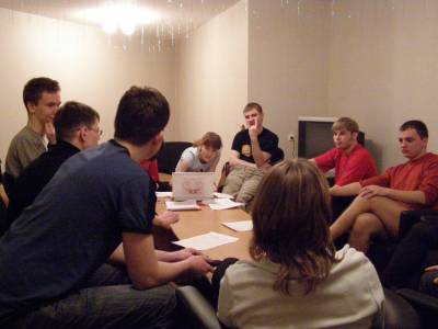 03.04.09, в пятницу в комнате отдыха на седьмом этаже общежития №5 прошло увлекательное мероприятие для всех желающих и первое в своем роде заседание, организованное самими студентами - Discuss Club. Жители замечательной тринадцатиэтажки обсуждали, как оказалось, животрепещущую проблему: «Гражданский брак, сожительство: за или против». Была опробована пропускная система, по которой желтые приглашения получили специальные гости, синие- докладчики (вносили, так сказать, ясность и информативную составляющую обсуждения) и, наконец, розовые – активные участники обсуждения. Конечно же, не обошлось без тех, кто «просто проходил мимо», но их, как ни странно, затянуло настолько, что лишь в полвторого ночи все по обоюдному согласию разошлись. Для организаторов приятной неожиданностью стал интерес студентов именно к этой проблеме, что обеспечило хорошую явку. В мероприятии приняли участие студенты различных институтов – Юстиции, Права и предпринимательства, Бакалавриата, СОПа и Аспирантуры. Стоит заметить, что молодых людей данная проблема волновала намного больше, чем девушек, - менее четверти присутствующих составил слабый пол. В ходе заседания атмосфера в аудитории менялась каждые 15 минут и успела пройти стадии знакомства, сдержанности, затем постепенного раскрепощения и в итоге переросла в бурное эмоциональное обсуждение. Интересно было наблюдать за прениями крайне противоположных точек зрения. Студенты основывали свои доводы как на бытовом понимании проблемы, так и с точки зрения права, философии и религии. Поддержать уважительное отношение друг к другу в ходе обсуждения удалось с помощью соблюдения всеми членами правил поведения в дискуссии (правило правой руки, отвергаешь - предлагай, активности и др). В заключение мероприятия было проведено анкетирование, чтобы выяснить мнение участников об организации, впечатлениях, которое вызвала дискуссия и для принятия мер по повышению эффективности последующих заседаний. Результатом обсуждения явилось голосование, разделившее мнение на 3 группы – 32% проголосовали «за сожительство», «против» выступило большинство – 47% и 21% воздержались.